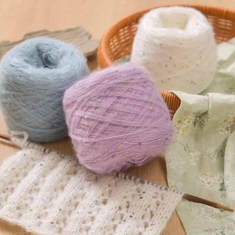 Renkli çok katlı yün ve tiftik karışımlı örgü ipliği el-örme kazak eşarp ceket boyalı desen dokuma iplik